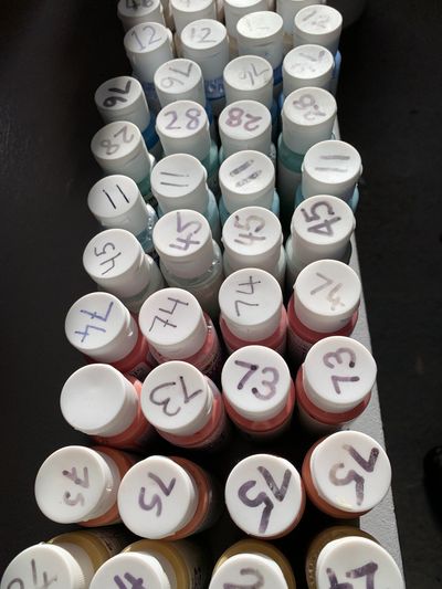 The boxes contain 25 colour glazes, plus black & white, water bowls, a fired colour tile to show how the colour look after firing, a selection of brushes, sponges & paint pallets. Everything you’ll need to get creative! We can also include specialist glazes & additional decorating tools like masking tape & writer bottles if requested.